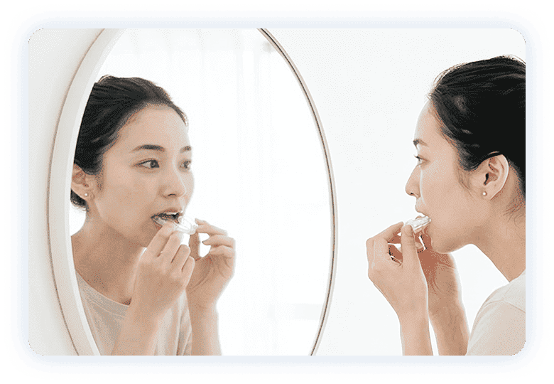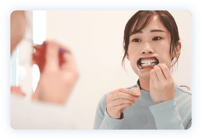 自宅で行うホワイトニング。専用マウスピースを使い、時間をかけて歯の内部から白くします。