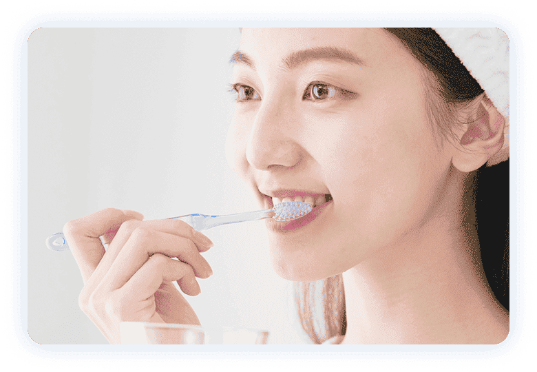 歯の内部から黄ばみをしっかり分解するため、光を透過するような、みずみずしい白さへ。すりガラスのようなマットな仕上がりにはなりません。