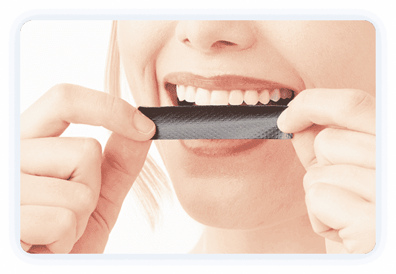汚れ吸着成分を含んだテープを上下の歯に15〜30分密着させた後、再度ブラッシングを行うことで、歯の表面の着色を効率的に落とす方法です。