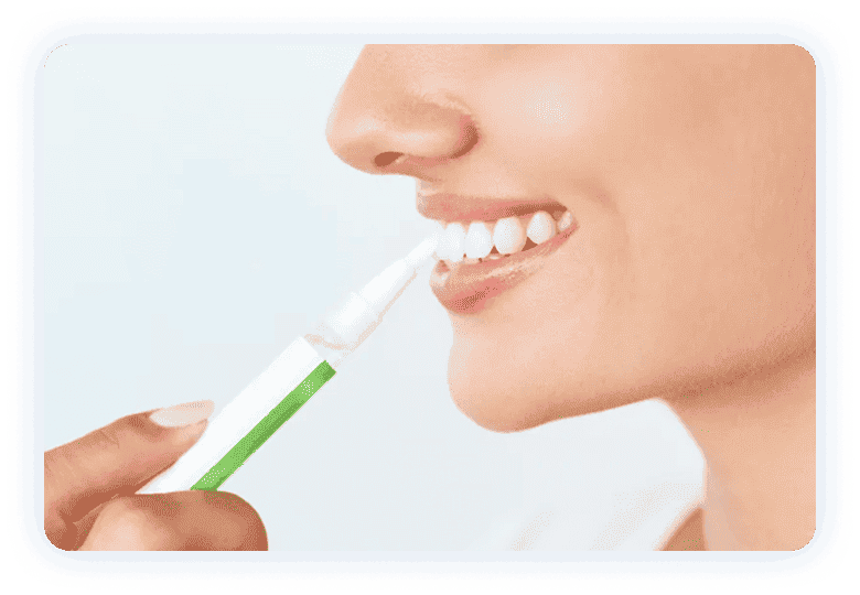 ペンタイプのホワイトニングジェルを使い、通常の歯磨き後に歯の表面へ塗布。5〜15分ほど置いてから再度ブラッシングすることで、効率的に汚れを取り除く方法です。